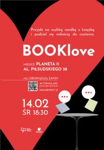 UWAGA! „BookLove” to spotkanie dla osób powyżej 16 lat. Liczba miejsc ograniczona, udział w wydarzeniu zostanie potwierdzony przez organizatorów.