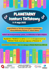 - Organizatorem “Planetarnego Konkursu TikTokowego” jest biblioteka multimedialna Planeta 11, filia nr 11 Miejskiej Biblioteki Publicznej w Olsztynie.