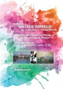 Zapraszamy do Planety11 na wernisaż wystawy „Miejskie impresje” i spotkanie z jej autorką – Anną Piórek, które odbędzie się 16.05.2018 (środa), o godz. 17:30 w Planecie11. Serdecznie zapraszamy, wstęp wolny!