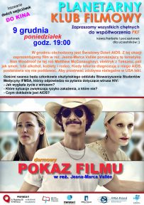 W grudniu obchodzony jest Światowy Dzień AIDS. Z tej okazji zaprezentujemy film w reż. Jeana-Marca Vallée poruszający tę tematykę. Ron Woodroof (w tej roli Matthew McConaughey), elektryk z Teksasu, pali jak smok, lubi alkohol, kobiety i rodeo. Kiedy lekarze diagnozują u niego AIDS, postanawia się nie poddawać. Aby przetrwać zdobywa nielegalne w USA leki.