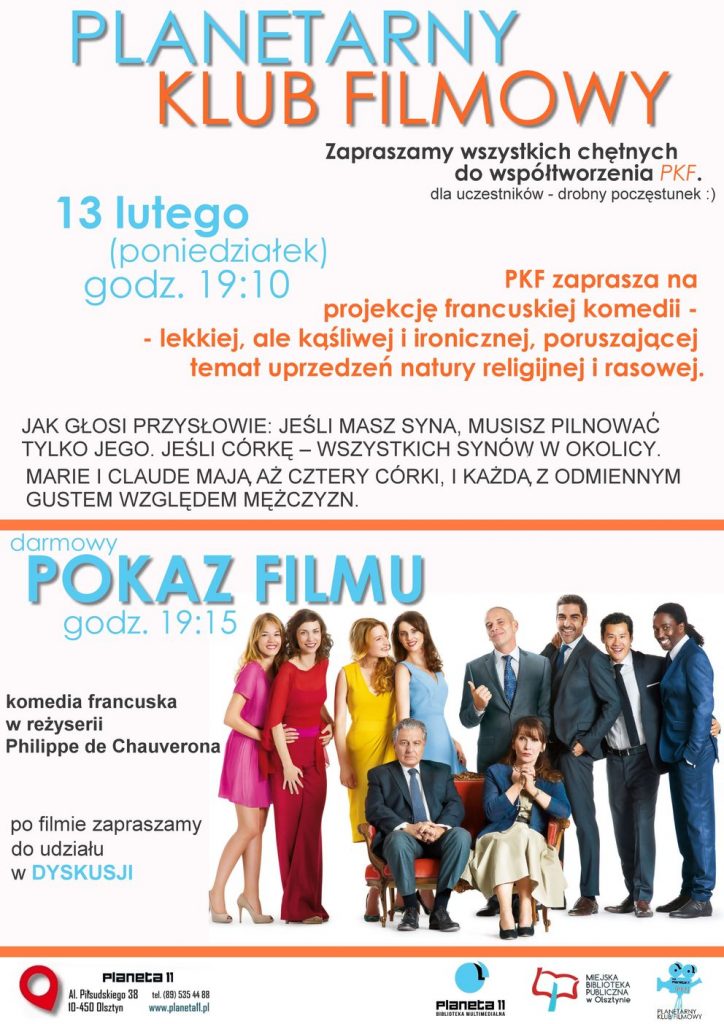 [Not a valid template]Czas szybko mija i już mamy luty… Po styczniowym , inauguracyjnym pokazie filmu biograficznego o tragicznych losach znanej współczesnej wokalistki muzyki jazzowej i burzliwej dyskusji, tym razem wybraliśmy film o bardziej przyjemnej tematyce. Ze względu na zbliżające się Walentynki proponujemy francuską komedię, pełną gagów i śmiesznych scenek sytuacyjnych.
