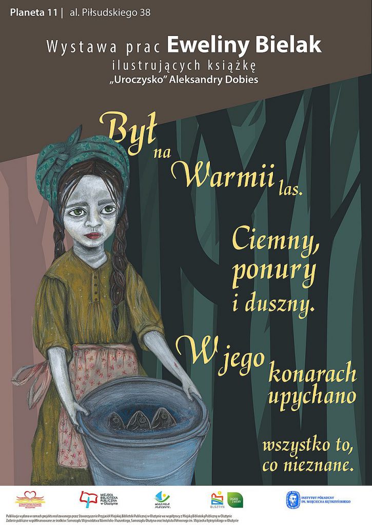 Obrazy stanowią ilustracje do książki UROCZYSKO Aleksandry Dobies i są zapowiedzią publikacji, która w listopadzie ukaże się w ramach projektu realizowanego przez Stowarzyszenie Przyjaciół Miejskiej Biblioteki Publicznej w Olsztynie we współpracy z Miejską Biblioteką Publiczną w Olsztynie.